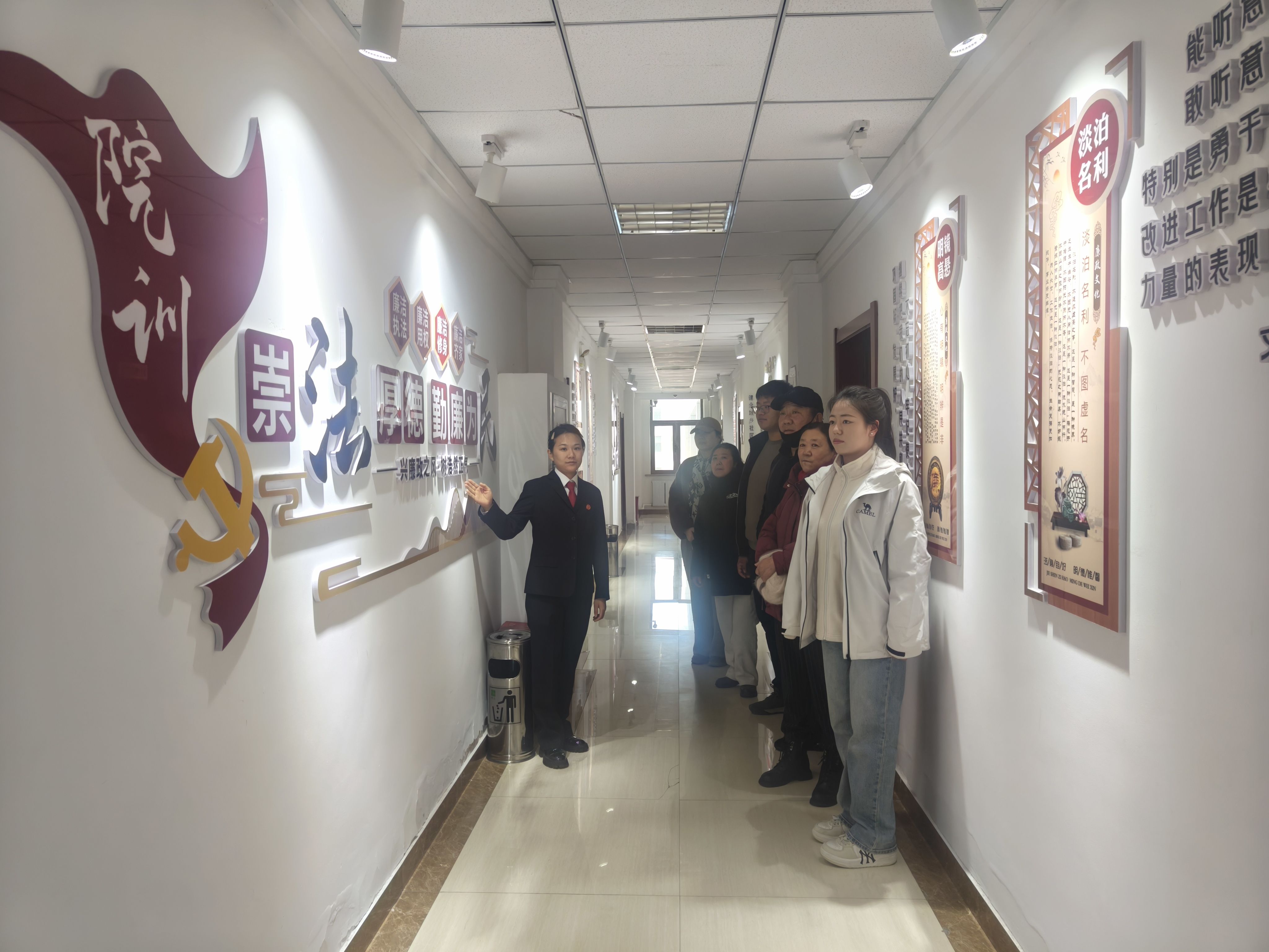 讲解员详细介绍了法庭的职能定位、机构设置、队伍建设及近年来在司法便民、纠纷化解、普法宣传等方面的工作成效。随后,代表们在干警的引导下,有序参观了诉讼服务中心、审判庭、调解室等功能区域,全方位了解法庭工作的各个环节。在诉讼服务中心,干警现场讲解了“一站式”诉讼服务举措,从立案登记、诉前调解到法律咨询、司法救助,细致解读了各项便民利民政策,让代表们直观感受到智慧司法带来的便捷高效,真切体会到法庭“司法为民”的初心与坚守。